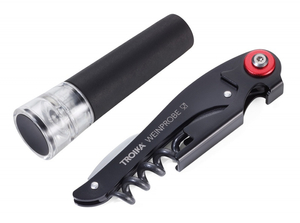 Zestaw do wina TROIKA Weinprobe, korkociąg + nożyk + zatyczka, czarny