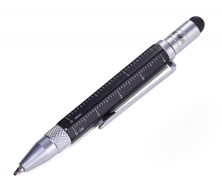 wielofunkcyjny: linijka w centymetrach i calach, śrubokręt płaski i krzyżakowy, rysik do ekranów dotykowych, wkład w kolorze czarnym + 2 zapasowe wkłady